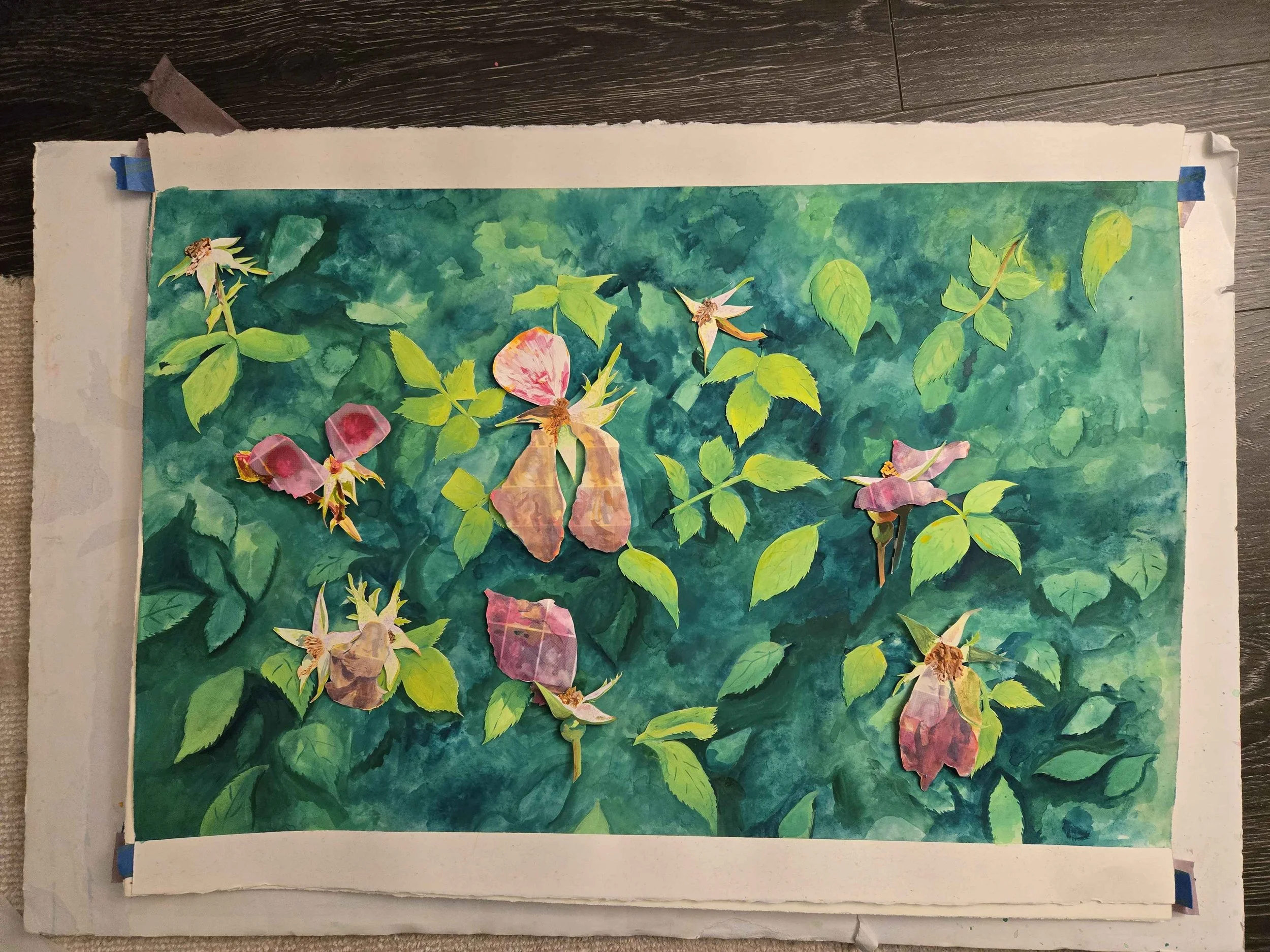 Top photo: Sketch for the rose painting