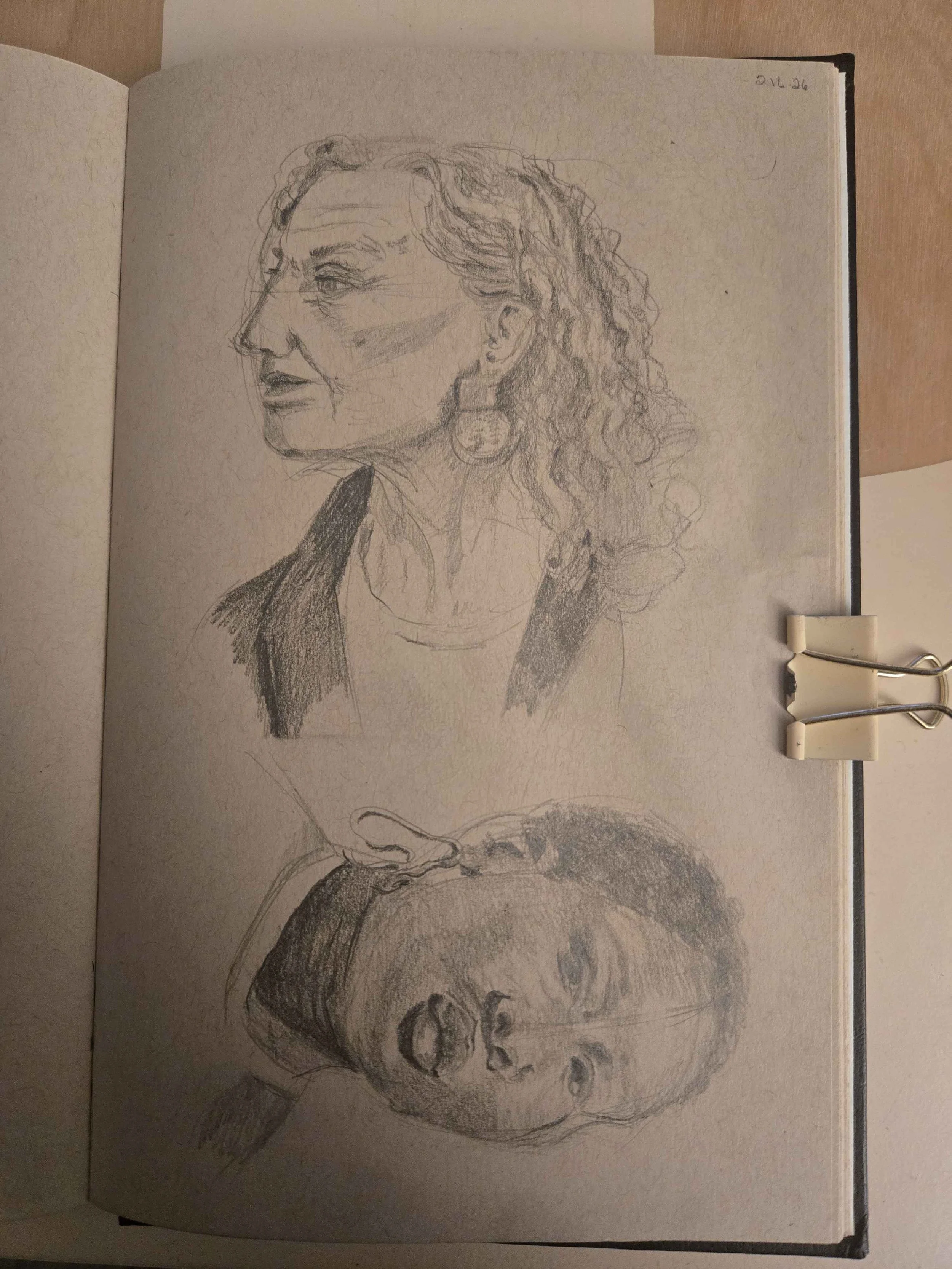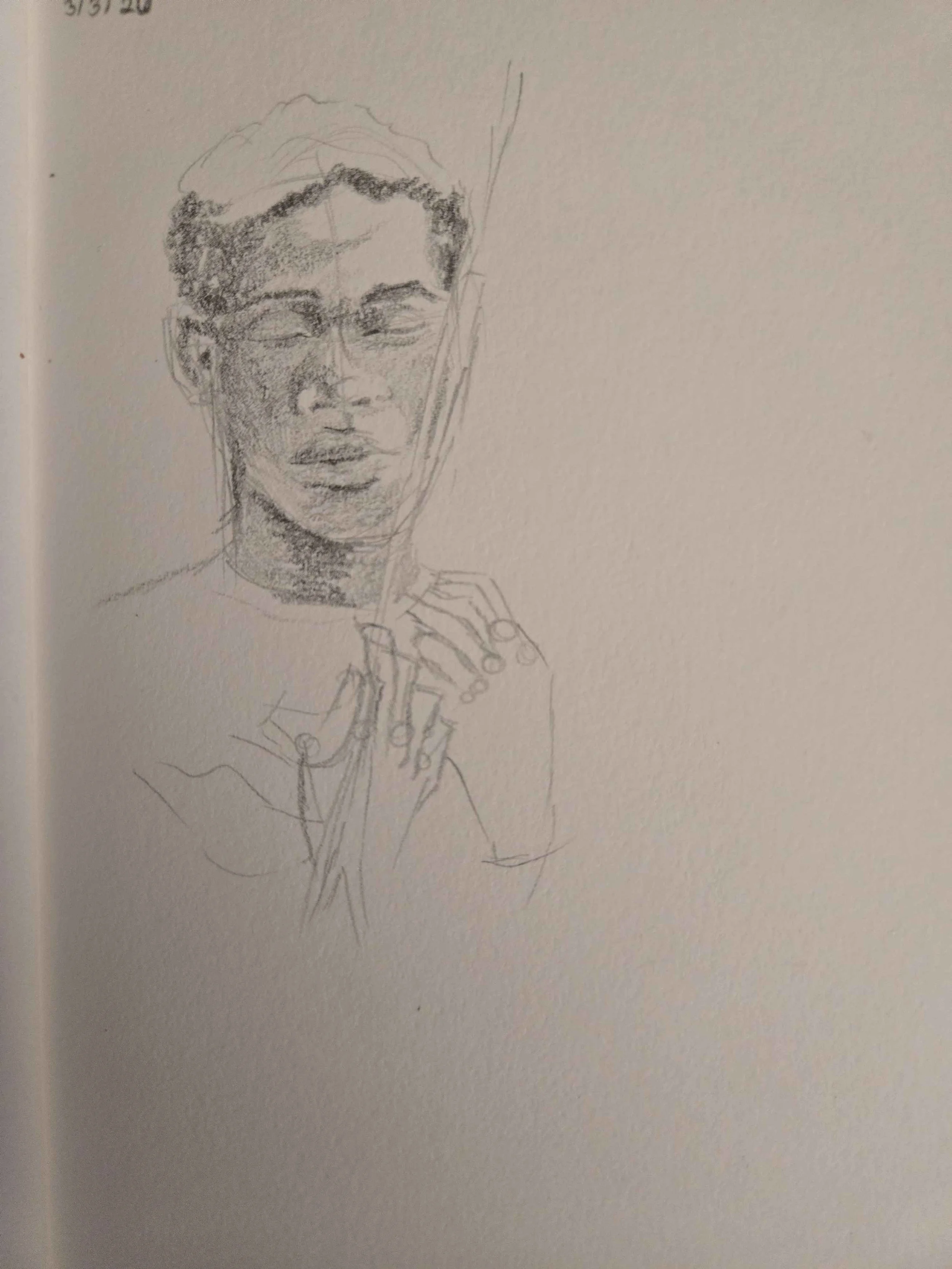 While I didn’t necessarily work on my paintings, I did continue to work on drawing portraits. I have a Pinterest board that has a bunch of portraits saved to it. I try to avoid heavily edited portraits (e.g, something from a beauty advertisement) because then I get to practice drawing features like wrinkles, freckles, moles, gummy smiles, etc. Those features make the portraits way more interesting, and it’s fun! I also try to save a variety of poses to keep practicing different angles (front-facing, side profile, etc.). Whenever I feel burned out, I try to work on portraits and small watercolors. It keeps my hand in practice, but it’s low stakes and less pressure.